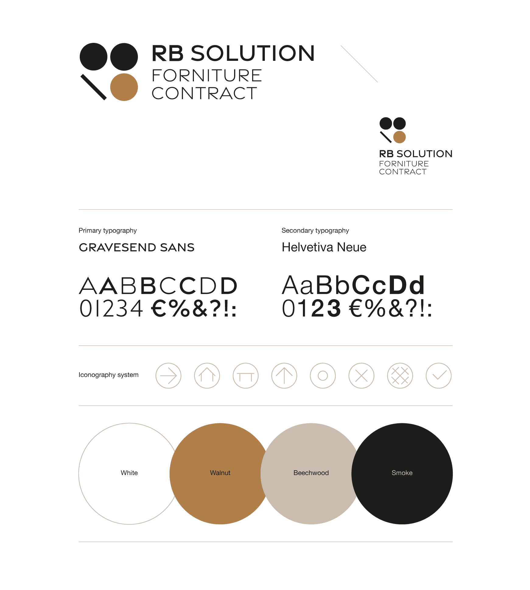 For RB Solution, I designed the studio’s logo and visual identity with the goal of positioning the brand competitively, making it both recognisable and distinctive. The concept is based on essential geometry — the circle and the line — evoking the modularity and structural logic of architectural space. Using these key elements, I reconstructed the letters “R” and “B”, creating a minimal, refined, and elegant logotype.